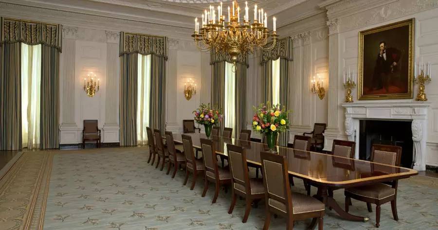 今年七月,美国第一夫人米歇尔对国宴厅进行了装修。国宴厅上次装修还是在1998年,当时的白宫女主人是希拉里·克林顿。