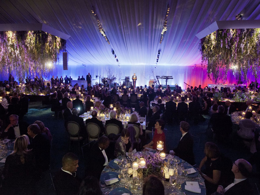在这里有个简单的餐前小憩,客人们可以用一些小点、鸡尾酒、葡萄酒或香槟。总统和第一夫人还将向外国元首介绍他们邀请来的其他客人,从美国大使、外交官、国会议员、总统的内阁成员,到其他著名人士如好莱坞电影明星等。