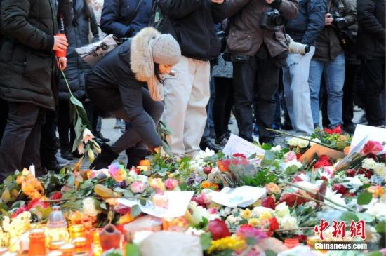 当地时间12月20日下午,德国柏林民众自发聚集到前一天晚间遭遇卡车恐袭的圣诞市场前,表达对逝者的哀思。 中新社记者 彭大伟 摄