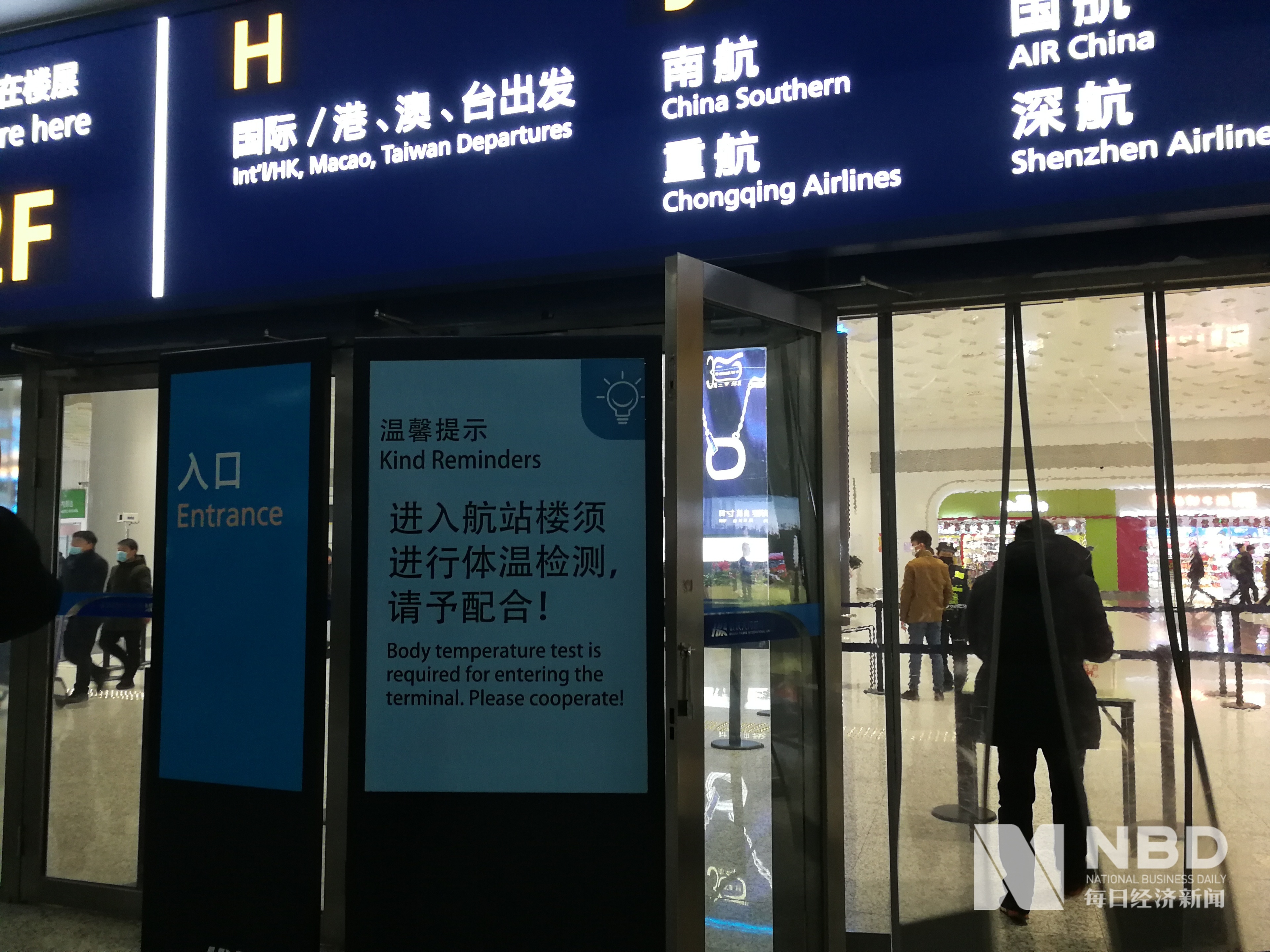 武汉天河机场进出均需检测体温 图片来源:每经记者 陈晴 摄