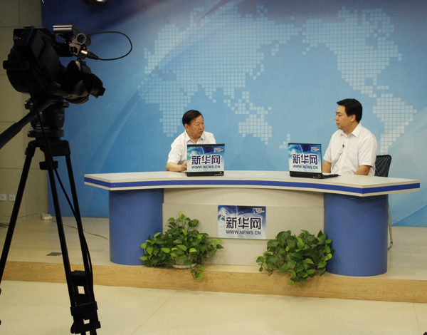 2013年7月24日,苏泊尔集团董事长苏增福走进新华网《新华访谈》直播间,讲述苏泊尔集团的品牌战略和转型之路。图为访谈进行中。新华网 朱鹏 摄