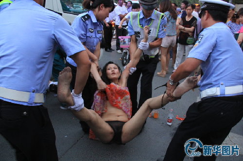 2013年08月01日晚19时左右,在郑州花园路与丰产路交叉口,一女子穿着暴露,在马路中央与交警对峙,导致交通堵塞。据周围群众介绍,女子疑精神受刺激,一度拒绝警方和120的救助。晚19点55分,在郑州市丰产路派出所民警的三次努力下,街头“裸奔女”最终被抬上警车带走,现场群众随即散去,花园路与丰产路口交通已恢复正常。