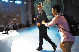 发布会一结束,冲出粉丝包围圈的胡润,误将一名工作人员当成粉丝“夺路而逃”