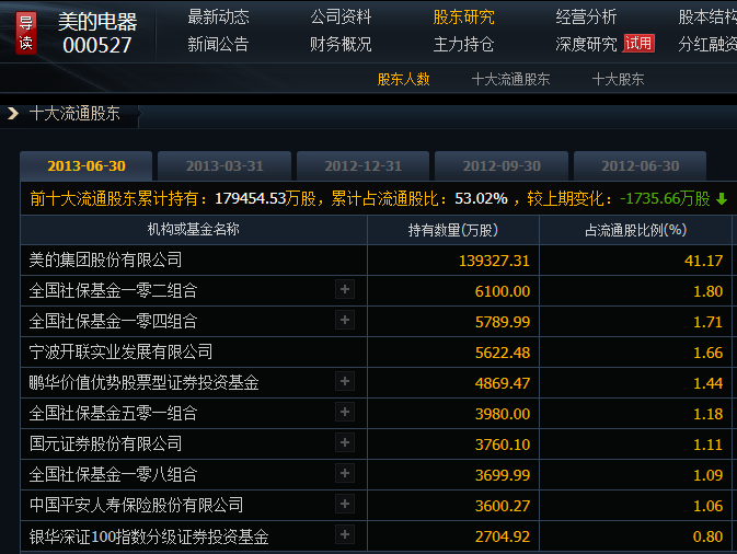 美的电器前十大流通股东