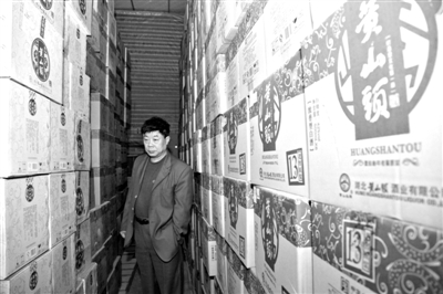 10月30日,黄山头酒经销商魏光华在其公司仓库里。他说:“这里是价值300多万的货,卖不出去,砸在手里。”季昊寅摄