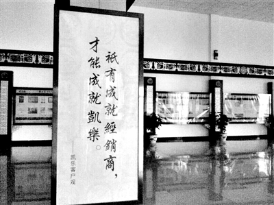凯乐科技公司办公楼大厅里,写着凯乐的“客户观”:“只有成就经销商,才能成就凯乐。”季昊寅摄
