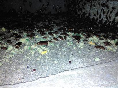 不一会儿,周围的动静越来越大,老板娘说,美洲大蠊已经在觅食了。征得同意后,记者打开手机的闪光灯,赫然看见令人头皮发麻的一幕:砂土上密密麻麻布满美洲大蠊,每一块石棉瓦下至少有数百只,它们大多一动不动进食,也有少部分在灯光照射下,会叼起一块饲料,爬到更加黑暗的角落里,记者还看到石棉瓦里,有无数触须、长脚若隐若现,显然藏匿其中的美洲大蠊并不会比正在进食的少。记者观察发现,这些美洲大蠊与日常生活中遇见的蟑螂不同,呈褐色,体形大的头部与身体的连接处有一圈白色,长有翅膀。老板娘称:“长翅膀的是成虫,我们一般每4个月收获一次,通过诱饵,或者用硫磺熏,将成虫聚集到一起,烫死晒干后就可以出售了。 ”![]()