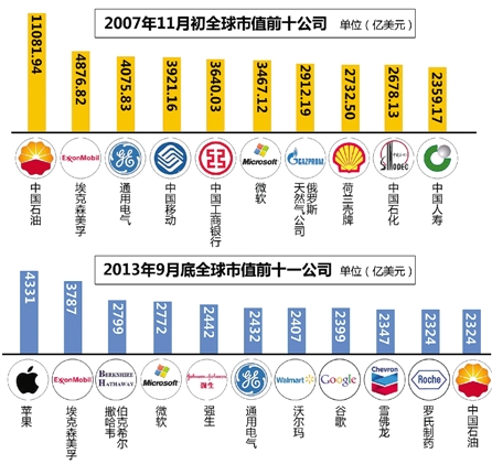 当时风光的不仅有中石油,据统计,在2007年11月初全球市值最大的十家上市公司中,来自中国的企业占了一半,分别是中石油、中国移动、工商银行、中国石化和中国人寿,大有全面赶超美国公司之势。