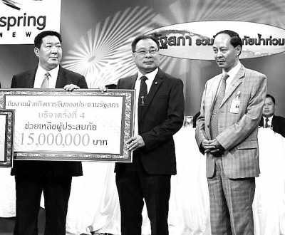 向泰国国会主席兼下议院议长颂萨·吉素拉暖阁下递献水灾捐款。