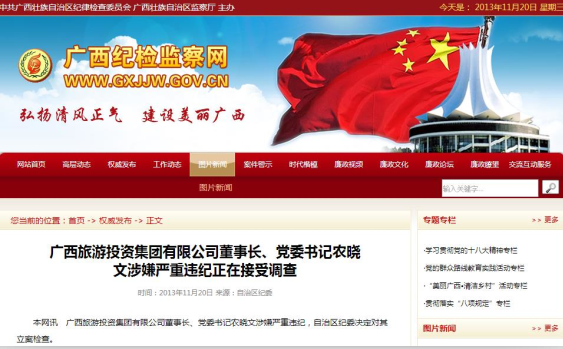 广西旅游投资集团董事长农晓文涉嫌严重违纪被查
