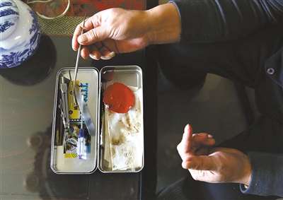 有时听着蝈蝈叫,他会想起儿时的师父周明义老先生。他给蝈蝈点药的技术就从师父那学的,“这活儿不好拿,首先点药这针,凉了,化不了这朱砂;烫了,蝈蝈腿就瘪了。位置差一点儿都不成,错一毫米,蝈蝈那味儿就全变了。”胡彦申回忆,他最初是在废纸上练。近千次练习后,才开始在蝈蝈身上点药。