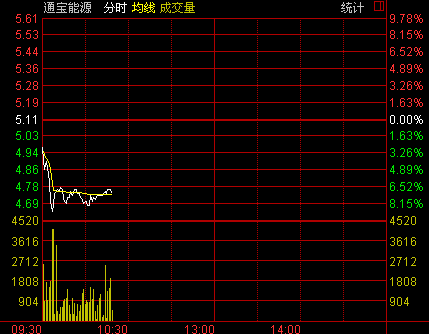 新华网消息 周一早盘通宝能源股价重挫,截止发稿报4.76元,跌幅6.85%。