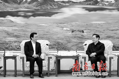 1月15日,吉林省委书记王儒林(右)在长春与到访的全国政协常委、恒大集团董事局主席许家印(左)亲切交谈。