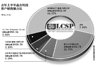 最近几年间,前五大客户的采购,贡献了晶方科技99.51%、93.55%和92.09%的营收。以其第一大客户格科微电子为例,2010年—2012年,晶方科技对其销售收入,分别占据当年总营收的54.8%、62.41%和49.89%。