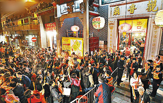 ▲广州城隍庙在城隍诞派长寿面 郑迅 摄