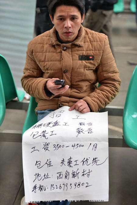 内地节后多地遭遇用工荒 大爷杵拐杖招工(图)