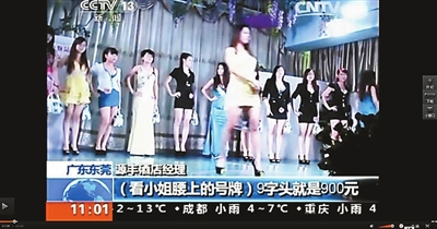 根据群众提供的线索,记者首先在东莞市中堂镇进行了暗访调查,这里距离东莞市区不足20分钟的车程。在107国道旁,有一家“源丰酒店”,记者刚走近门口,就有一名经理迎了上来,直接把记者领进了位于酒店一层的一间大屋。经理告诉记者“很快就开始选秀了”,两分钟后,十几名小姐鱼贯而出。每个小姐的腰上,都戴有一个号码牌,台下的客人如果看中了哪个小姐,就报她的号码,旁边的经理就会把这个小姐留下来,并安排客人带着小姐到楼上开房,所谓的“选秀”实际上就是卖淫。