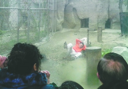 王先生说,大约3分钟后,可怕的事情终于发生———他居然纵身一跃,跳进了白虎活动场。