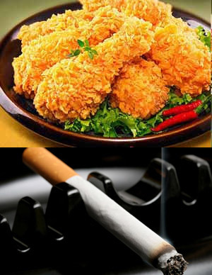 核心提示: 世界卫生组织公布了历时3年的研究结果让人触目惊心:吃烧烤等同吸烟的毒性。研究表明,1个炸鸡腿等同于60支香烟的毒性,1串烤羊肉等同于20支香烟的毒性。