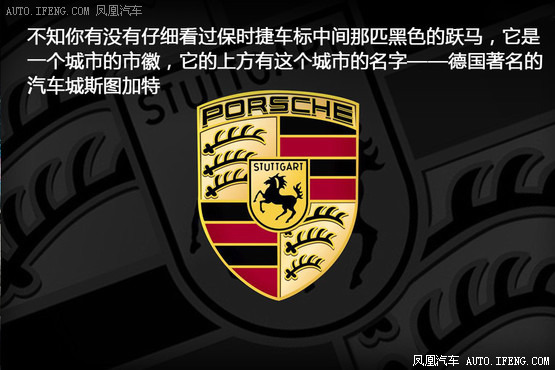 核心提示: 不知你有没有仔细看过保时捷车标中间那匹黑色的跃马,它是一个城市的市徽,它的上方有这个城市的名字——德国著名的汽车城斯图加特。