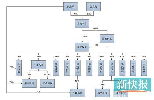 新快报记者调查发现,今年50岁的何志平毕业于江西南丰一中、东华大学,早年与其配偶张文莉成立深圳华建东方投资控股有限公司(下称“华建东方”),通过华建东方和深圳市盈安实业有限公司(下称“深圳盈安实业”)和上海佳盈科拓企业发展有限公司(下称“上海佳盈科拓”)控制中国华建投资控股有限公司(下称“华建投资”),再以华建投资为平台进行运作,仅收购书显示的何志平控制的核心企业和关联企业已多达19家,大多从事房地产和股权投资,并以“华建”为名。