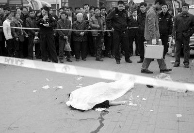 在现实社会中,像这类的割喉案件已经发生了不是一起两起,2012年5月25日,11时40分许,郑州市客运南站门前。一身穿黑色棉袄、灰色短裤的年轻女子,躺在地上,脸上、脖子处遍布血迹。一旁,救护人员正对其救治,近百名市民议论纷纷。