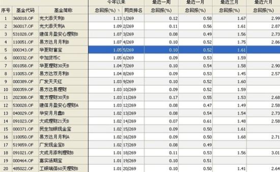 余额宝的直接竞争对手,微信推出的理财通(华夏财富宝,去年11月推出)今年以来的收益率是1.05%,比余额宝要好,排名第5位。