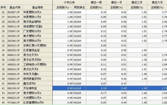 首先,从收益率看,余额宝在货币基金中算中上游水平。从今年以来的收益率看,排名第一的光大添天利B已经取得了1.13%的总回报,余额宝(天弘增利宝)的收益率是0.98%,在269只基金中排名42位。从最近6个月收益率看,余额宝是2.73%,排名28位。