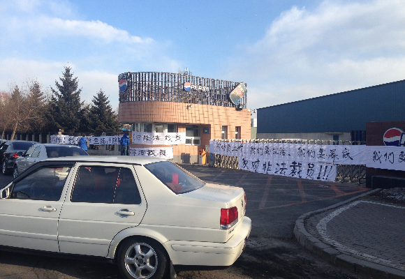 曝百事长春非法裁员员工堵门口拉横幅抗议