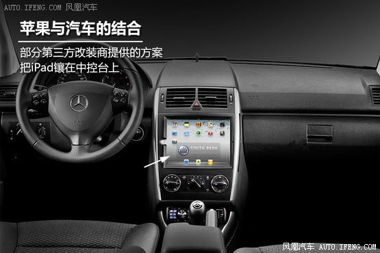 自从苹果推出iPad后,就有人打算将iPad放在汽车中控台中作为娱乐系统,事实上这是行得通的,已经有改装店提供这项服务,但iPad只是一个平板电脑,只能娱乐,提供不了与汽车系统之间的互通,说直白一点,只是给汽车装了一个iPad。