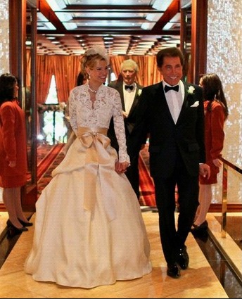 020202 2011年4月,博彩业亿万富豪史蒂夫·韦恩在其韦恩拉斯维加斯酒店(Wynn Las Vegas)中和500位亲朋好友的见证下迎娶了安德利亚·西森。照片背景中可以看到首席伴郎克林特·伊斯特伍德(Clint Eastwood)的身影。宾客们观看了乡村乐歌手加斯·布鲁克斯(Garth Brooks)以及特蕾莎·耶伍德(Trisha Yearwood)的表演,并且都可以带微缩版的婚礼蛋糕回家。