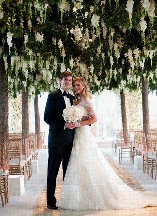 2009年,唐纳德的女儿嫁给了《纽约观察者》(New York Observer)老板库什纳,婚礼在新泽西贝德明斯特(Bedminster)的特朗普国际高尔夫俱乐部(Trump National Golf Club)举行。单是伊万卡所佩戴的珠宝价值就超过了普通婚礼的总花销:她的白金钻石头饰价值4.5万美元,而她的钻石耳环和手镯加起来价值22万美元。![]()