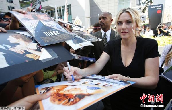 凯特 温斯莱特留名好莱坞星光大道 兴奋趴地秀乳沟(组图)