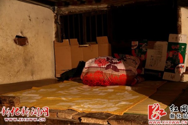 核心提示: 近日一则有关湖南新化县一校学生住“窑洞 ”的照片在网络曝光。新化县炉观镇青山中学,现有学生438人。周边15个自然行政村的学生都要到这里上学。离学校最远的月弓村、珑山村的学生要走15里路,所以学校为路途远的学生安排了住宿寝室。图为孩子们晚上睡觉的地方。