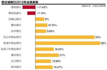 21世纪经济报道记者统计,已经公布2013年业绩的城商行中,德阳银行净利润下降11.43%,攀枝花市商业银行(下称“攀枝花银行”)净利同比下降7.15%。