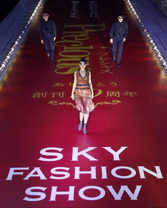 据悉,这场时装秀是为了纪念小学馆出版社的女性杂志《Precious》创刊10周年。主办单位称,这种空中时装秀在日本国内尚属首次。