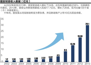 仅用了十多年时间,固安县域经济总量已跃上百亿元台阶。去年,全部财政收入、地方公共预算收入增幅连年位居廊坊市10个县(市、区)榜首,总量跨入全市第一方阵行列,城镇居民人均可支配收入达到24342元,农民人均纯收入跨过万元大关,达到10317元。成为名符其实的“京南第一县”。