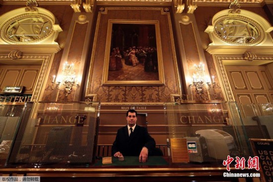当地时间5月16日,蒙特卡洛大赌场助理出纳Gregory Francois在柜台后等候客人。