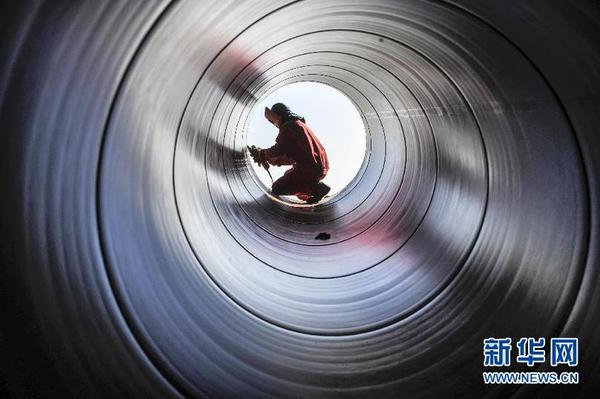 新疆经济社会发展步入快车道:有速度有质量有创新新疆油建公司的建设者在西气东输三线西段(二标段)清洁整理管道(2012年10月22日摄)。中央新疆工作座谈会召开4年来,新疆各族干部群众直面挑战,奋起直追,经济社会发展步入快车道,经济发展有速度有质量有创新。新疆维吾尔自治区统计局数据显示,2011年以来,新疆GDP增速保持两位数以上,在全国排位从2010年的29位跃升至2013年的11位。今年一季度,这一纪录被再度刷新——GDP同比增长10.2%,增速居全国第四。新华社记者 赵戈 摄