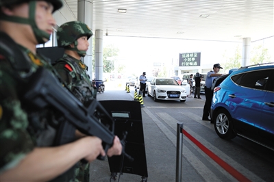 昨日,通州区白庙检查站,武警持枪执勤。