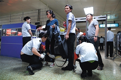 昨天,从天通苑北等站上车的乘客发现,地铁站已开始接受手检。目前,北京市需要“人物同检”的地铁站增至9个,但为让市民快速通行,客流高峰首次启动“简易安检程序”。