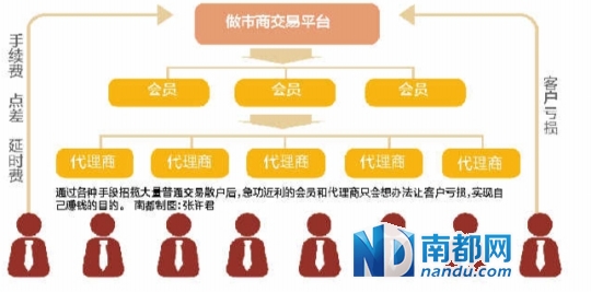 “根本原因在于做市商与客户对赌,以达到‘吃头寸’的目的。所谓‘头寸’即是客户的亏损,跟手续费不同的是,客户的所有亏损交易平台并不截留,而是全部返还给会员,最终由会员和代理商按协商好的比例分成。”他揭露。“为此,每天推出所谓的分析师带领客户操作,有人在群里扮演老师,有的扮演托,让投资者掉进设好的圈套。初期会让投资者盈利几单尝到甜头,紧接着就让投资者追加本金,当投资者追加保证后,他们再故意发布错误的预测。分头吞吃掉客户的资金。”