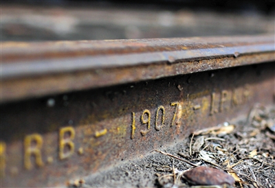 在车站正常使用的轨道旁,还静静躺着4道铁轨。扳道工张师傅捡起一根树枝,蹭去铁轨内的尘土,上面露出“1907”的字样。