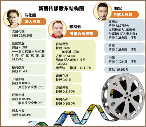 本报讯(记者张毓)尽管近期陆续曝光的明星持股现象已多到“审美疲劳”,但前晚公布IPO预披露说明书的新丽传媒还是引起了广泛的关注,除了必备的“明星光环”(陈凯歌、胡军、海清等均直接或间接持股)外,马化腾、光线传媒、万达影视等行业大佬也纷纷现身股东名单。