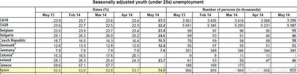 一张图系列:衰退结束?西班牙年轻人失业率飙升至54%