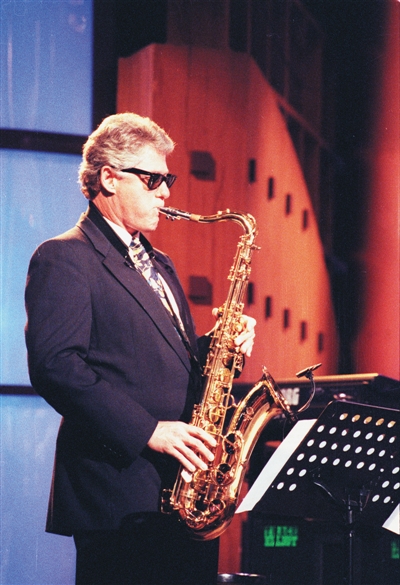 1992年,美国前总统克林顿在大选之前,登上电视吹奏萨克斯风。