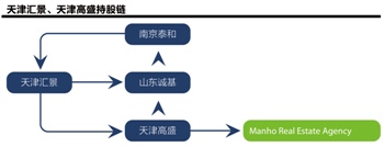 根据全国企业信用信息公示系统,天津高盛成立于2006年,由“山东诚基房地产开发有限公司”(下称“山东诚基”)和英属维京群岛注册公司“Manho Real Estate Agency”持股,两者分别出资304万美元、275万美元,属外商投资公司。