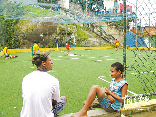 里约热内卢贫民窟里的足球场。特派记者 郭剑摄