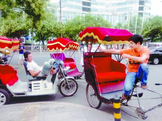 清晨6点,小周和其他黄包车车夫在三里屯的一个路口,等待看完球回家的球迷。远处走来一位外国姑娘,小周朝她的方向喊道:“Where are you going(你去哪里)?”两人用英语谈了几句后,外国姑娘坐上了小周的黄包车。