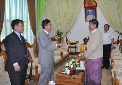 2014年2月19日,驻缅甸大使杨厚兰会见缅甸铁道部副部长、皎漂经济区开发委员会主席敏登,就推进两国经济合作深入交换意见。